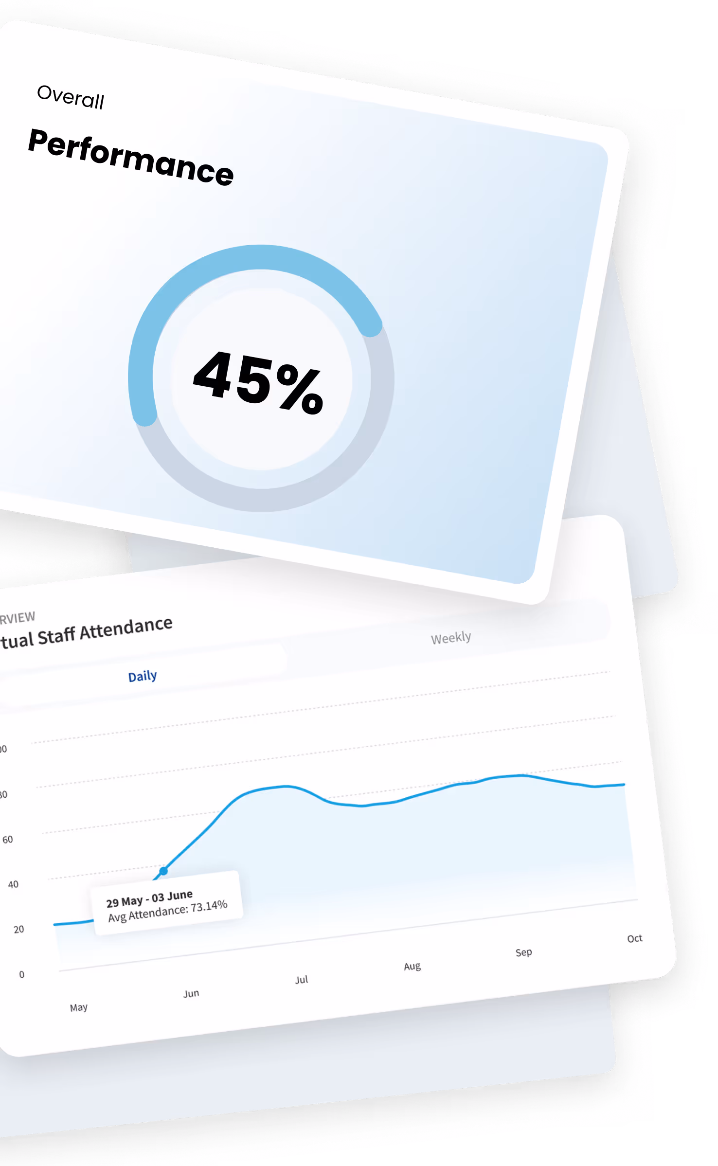 The platform automatically monitors hours worked, task updates, and engagement. You’ll have access to real-time productivity data, giving you full visibility to ensure accountability and efficiency across your team.
